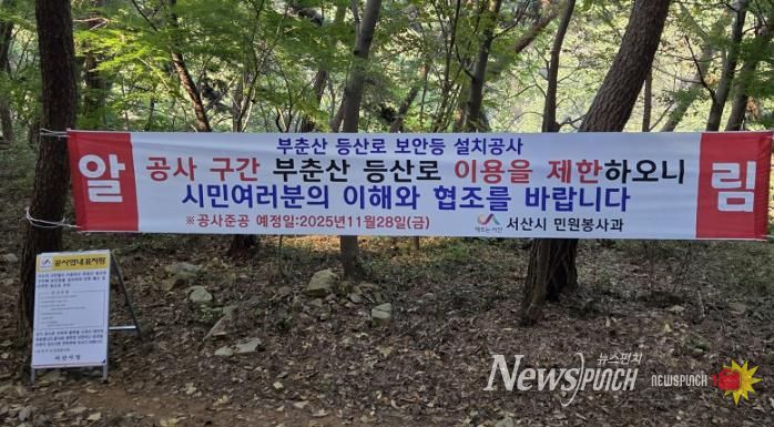 뉴스펀치 김길룡 기자 | 충남 서산시가 부춘산 등산로의 야간 안전을 개선하기 위해 부춘산 등산로 내 보안등 설치 공사를 실시한다고 24일 밝혔다.