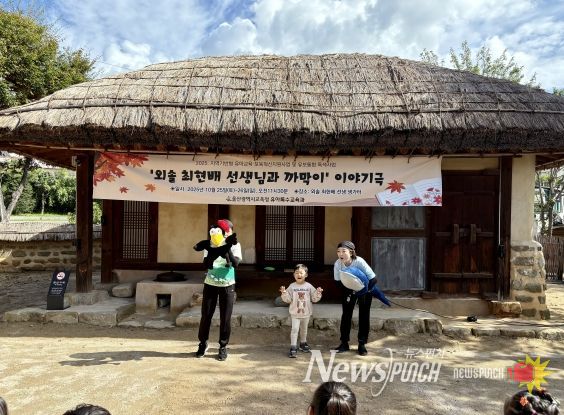 뉴스펀치 김길룡 기자 | 울산광역시교육청은 25~26일 오전 11시 30분부터 12시까지 외솔 최현배 선생 생가터에서 어린이와 가족을 대상으로 이야기 극 ‘외솔 최현배 선생님과 까막이’ 공연을 열었다.