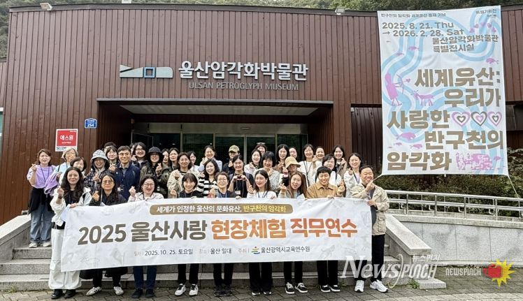 뉴스펀치 김길룡 기자 | 울산광역시교육연수원(원장 한현숙)은 25일 울주군 대곡리와 천전리 일원에서 유치원, 초중등 교원 40명을 대상으로 ‘울산 사랑 현장 체험 직무연수’를 진행했다.