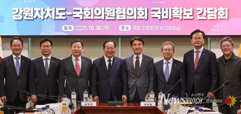 뉴스펀치 김길룡 기자 | 김진태 강원특별자치도지사는 10월 30일 오후 2시, 국회 의원회관에서 도내 지역구 국회의원 7명과 함께 도 국회의원협의회를 열고 2026년도 국비 추가 확보 방안 등을 논의했다.