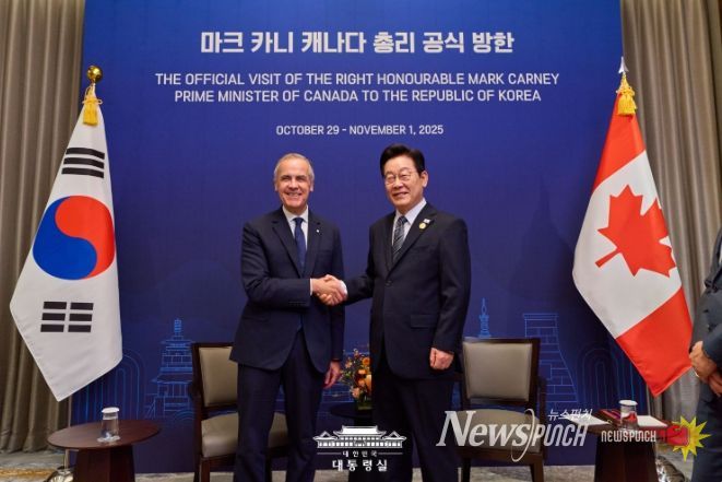 뉴스펀치 김용희 기자 | 이재명 대통령은 오늘 11시부터 마크 카니 캐나다 총리와 소인수 회담과 1대1 회담, 확대 오찬회담을 연이어 진행했다.