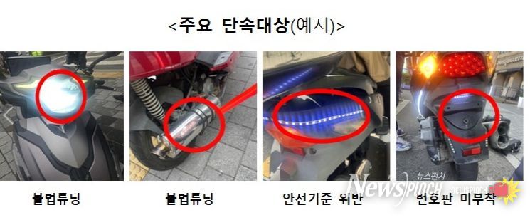주요 단속 대상은 △전조등 및 소음기 등 불법 튜닝 △안전기준 위반 △미사용 신고 운행 △번호판 미부착·훼손·가림 등 자동차 관리 법령 위반 이륜자동차다.
