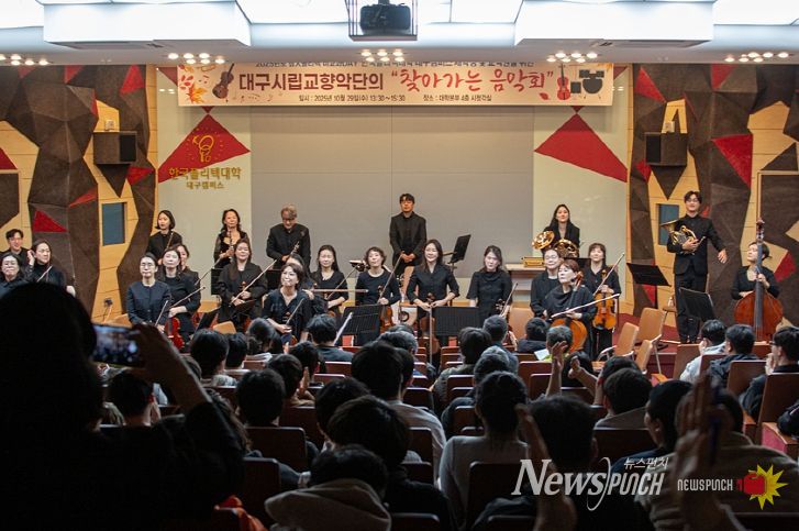 뉴스펀치 조평훈 기자 | 대구문화예술진흥원 산하 대구시립교향악단(음악감독 겸 상임지휘자 백진현)이 10월 29일 한국폴리텍대학 대구캠퍼스 본부 4층 시청각실에서 올해 마지막 ‘찾아가는 음악회’를 성료했다.
