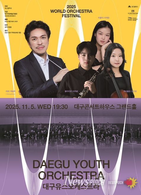 뉴스펀치 조평훈 기자 | (재)대구문화예술진흥원 대구콘서트하우스는 오는 11월 5일 저녁 7시 30분, 그랜드홀에서 ‘2025 월드오케스트라페스티벌’의 일환으로 대구유스오케스트라의 공연을 개최한다.