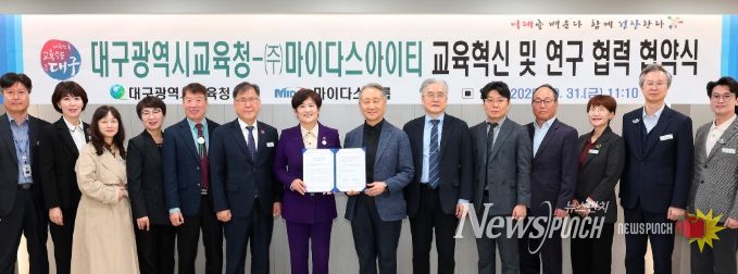 뉴스펀치 조평훈 기자 | 대구시교육청은 10월 31일 오전 11시 시교육청 접견실에서 ㈜마이다스아이티와 ‘교육혁신 및 연구 협력을 위한 업무 협약’을 체결했다.