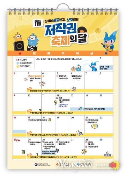 뉴스펀치 김희경 기자 | 문화체육관광부는 한국저작권위원회, 한국저작권보호원과 함께 2025년 11월을 ‘저작권 축제의 달’로 정하고 국민과 함께 창작이 존중받고 보호받는 건강한 저작권 문화를 확산하기 위한 다양한 행사를 추진한다.