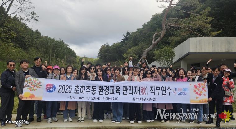뉴스펀치 조평훈 기자 | 대구시교육청은 10월 23일 초·중등 교감 70명을 대상으로 사유원(군위군 부계면)에서, 10월 31일부터 11월 1일까지 초·중등 교장 43명을 대상으로 국립청소년해양센터와 국립울진해양과학관에서 ‘2025 춘하추동 환경교육 관리자 직무연수’를 실시했다.
