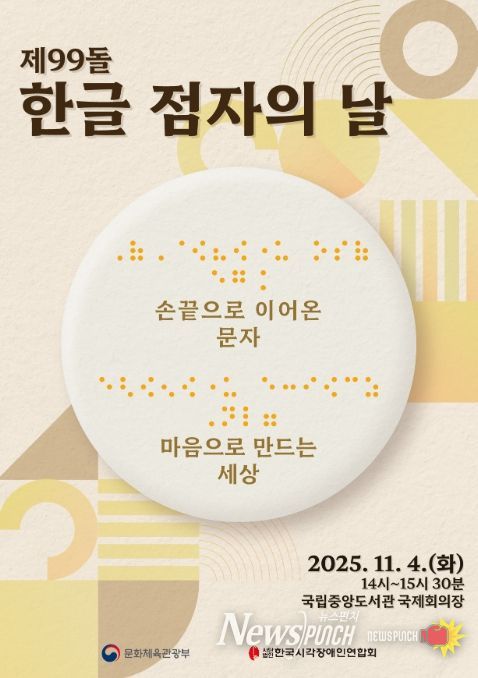 뉴스펀치 김희경 기자 | 문화체육관광부는 한국시각장애인연합회와 함께 11월 4일 오후 2시, 국립중앙도서관에서 ‘제99돌 한글 점자의 날’ 기념식을 개최한다.