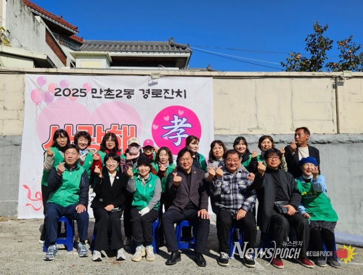 뉴스펀치 조평훈 기자 | 대구 수성구 만촌2동 새마을협의회(회장 구자헌)와 새마을부녀회(회장 장옥련)은 지난 3일 만촌동 신수원본가 주차장에서 지역 어르신들을 위한 ‘2025 만촌2동 경로잔치 사랑해 효(孝)’ 행사를 성황리에 개최했다.