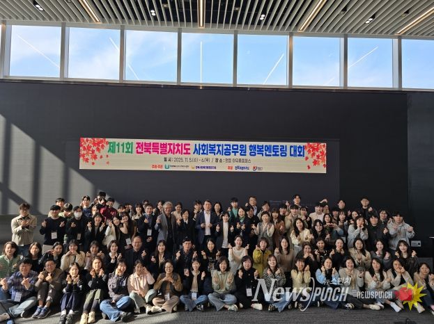 뉴스펀치 정홍균 기자 | 전북도 사회복지행정연구원(회장 박은주 전주시 생활복지과장)은 지난 5일과 6일 이틀간 정읍시 JB금융그룹 아우름캠퍼스에서 도내 14개 시군 사회복지공무원 100여 명이 참여한 가운데 사회복지공무원의 소통과 역량 강화를 위한 ‘2025 전라북도 행복멘토링대회’를 개최했다.