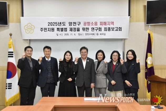 뉴스펀치 김완규 기자 | 양천구의회는 11월 6일, 양천구의회 1층 회의실에서 '공항소음 피해지역 주민지원 특별법 제정을 위한 연구회' 최종보고회를 개최했다. 본 연구회는 공항 운영 과정에서 발생하는 지속적인 소음 피해 문제를 단순 민원 대응 차원을 넘어 법·제도 개선과 지원 체계 마련의 공공 현안으로 다루기 위해 구성됐다.