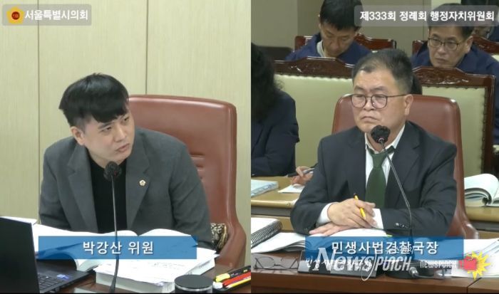 뉴스펀치 김완규 기자 | 서울시의회 박강산 의원(더불어민주당 비례대표)은 7일 서울시 민생사법경찰국 대상으로 한 2025년도 행정자치위원회 행정사무감사에서 성과지표가 시민의 체감에 동떨어진 지표로 운영되고 있다며 전면적인 개선을 촉구했다.