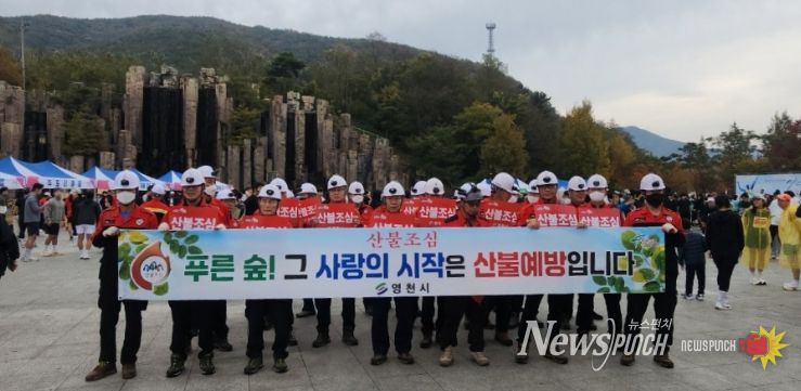 뉴스펀치 김길룡 기자 | 영천시는 가을철 산불조심기간을 맞아 지난 8일 영천댐공원에서 산불예방 홍보를 위한 캠페인을 펼쳤다.