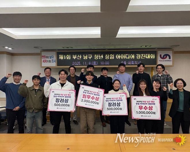 뉴스펀치 김길룡 기자 | 부산 남구는 지난 11월 8일 남구청 대회의실에서 '제1회 부산 남구 청년 창업 아이디어 경진대회' 본선을 성황리에 개최했다고 밝혔다.
