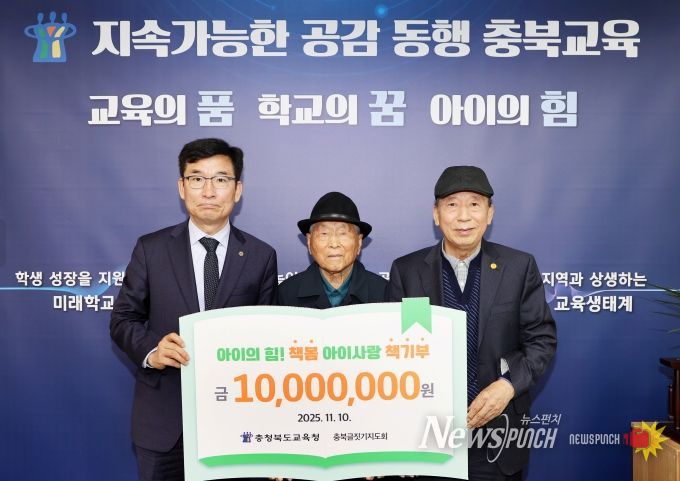 뉴스펀치 김길룡 기자 | 충청북도교육청은 10일 오전, 교육감실에서 '아이의 힘! 책봄 아이사랑 책기부' 기탁식을 개최했다.