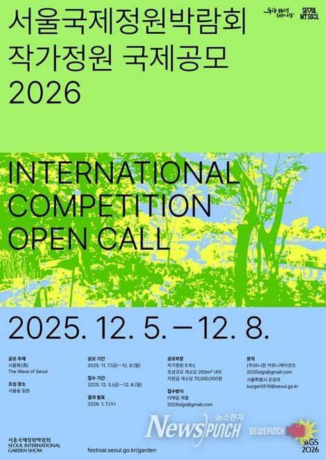 뉴스펀치 김완규 기자 | 서울시는 12월 8일까지 ‘2026 서울국제정원박람회’의 작가정원 5개 작품에 대한 국제공모를 진행하고, ‘서울류(流)-The Wave of Seoul’을 주제로 한류를 넘어 ‘서울다움’을 보여줄 정원 작품을 찾는다.