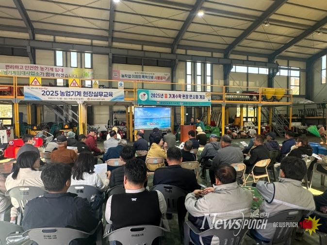 뉴스펀치 김길룡 기자 | 거제시농업기술센터는 콩 재배 농가의 노동력 절감과 기계화 영농 활성화를 위해 “2025년 콩 기계수확 현장연시회”를 지난 11월 10일 13시 30분부터 16시 30분까지 거제시 농기계 임대사업장, 거제면 서정리 446-2, 446-3번지 일원에서 개최했다고 밝혔다.