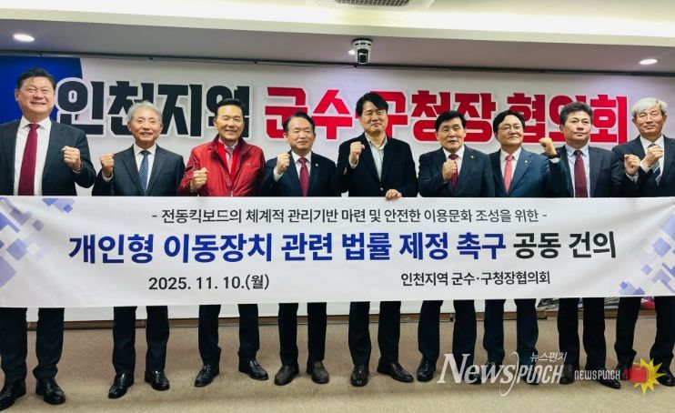 뉴스펀치 김길룡 기자 | 인천 지역 군수·구청장협의회가 전동킥보드 법률 제정을 촉구하는 공동 건의문을 채택했다.