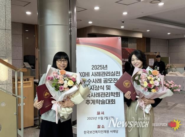 뉴스펀치 김길룡 기자 | 아산시는 7일 한국보건복지인재원에서 열린 ‘2025년 사례관리실천 우수사례 공모전’에서 사회복지과 이준영·전진희 통합사례관리사가 한국보건복지인재원장상을 수상했다고 밝혔다.