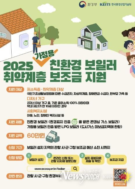 뉴스펀치 강영선 기자 | 보령시는 대기오염 및 온실가스 저감을 위한 ‘2025년 가정용 친환경 보일러 보급사업’의 신청을 받는다고 밝혔다.