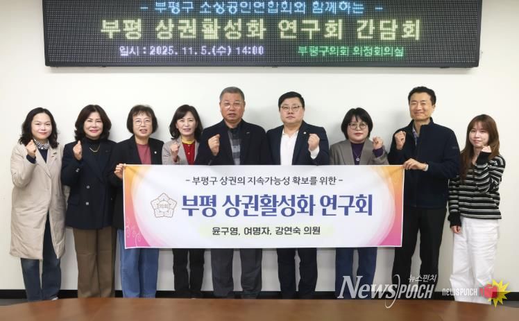뉴스펀치 김길룡 기자 | 인천 부평구의회 의원연구단체인 “부평 상권활성화 연구회”가 소상공인들의 현안 청취와 상권 활성화 방안 모색을 위해 지난 5일 부평구 소상공인연합회와 간담회를 성공적으로 마쳤다.