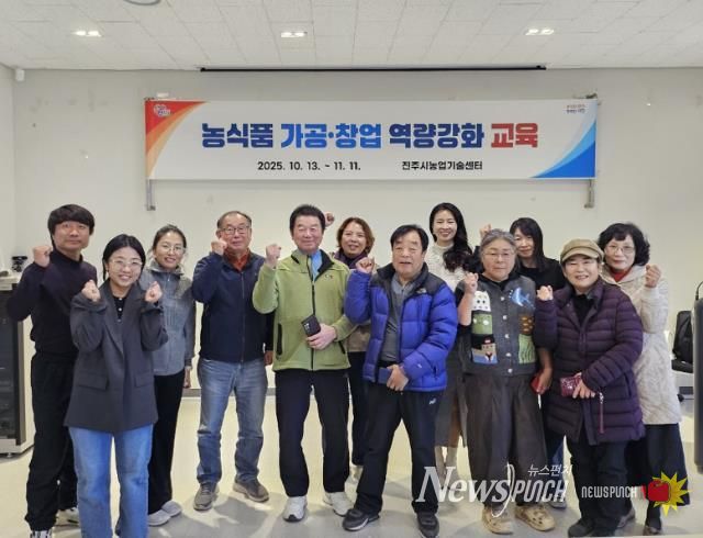 뉴스펀치 김길룡 기자 | 진주시는 농업기술센터에서 지난 10월 12일부터 11일까지 운영한 ‘농식품가공·창업 역량강화 교육과정’을 성공적으로 마무리했다고 밝혔다.