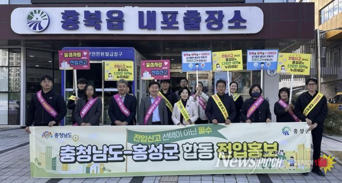 이번 캠페인은 홍성군 인구전략담당관, 홍북읍 행정복지센터, 충청남도 공공기관유치과 등 총 30여 명이 참여해 내포신도시 인구증가 대응 역량을 결집했으며, 현장에서는 전입신고 절차와 전입세대 지원 안내 등 홍성군 정주혜택을 집중 홍보했다.
