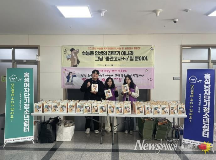 뉴스펀치 김길룡 기자 | 홍성남자·여자단기청소년쉼터는 지난 11일 홍성고등학교에서 수험생들을 응원하는 ‘수능일 계기 홍보 아웃리치’ 활동을 실시했다고 밝혔다.