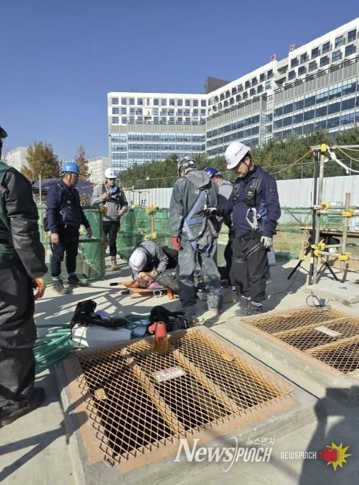 훈련은 △작업자 질식사고 발생 상황 전파 △119 구조요청 및 비상대응반 가동 △구조장비를 이용한 인명구조 및 응급조치 △현장 지휘체계 운영 등의 순으로 진행됐다.