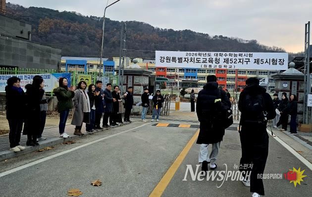 뉴스펀치 김길룡 기자 | 최상기 인제군수는 11월 13일 2026학년도 대학수학능력시험을 맞아 인제고등학교와 원통고등학교 고사장을 방문해 수험생들에게 따뜻한 격려의 메시지를 전하며 수능대박을 기원했다.