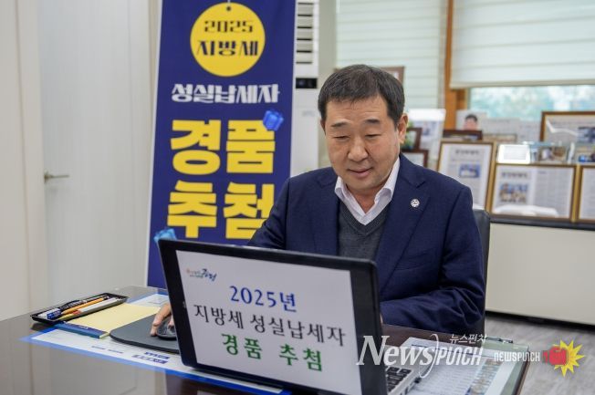 뉴스펀치 김길룡 기자 | 충북 증평군은 13일 군수 집무실에서 ‘2025년 지방세 성실납세자 경품추첨’을 실시했다고 밝혔다.