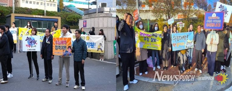 뉴스펀치 김길룡 기자 | 영천시의회는 2026년 대학수학능력시험일인 13일 오전 관내시험장인 영동고등학교와 선화여자고등학교를 찾아 지역 수험생들을 응원했다.