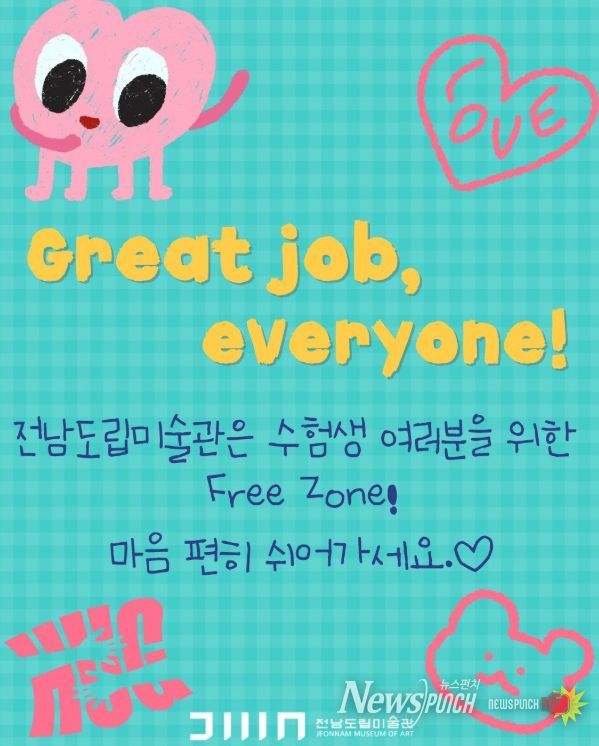 이지호 전남도립미술관장은 “오랜 시간 노력한 수험생들이 예술을 통해 잠시 마음의 여유를 찾고 새로운 시작을 준비하길 바란다”며 “전남도립미술관이 그 여정에 함께하는 따뜻한 문화공간이 되길 기대한다”고 말했다.