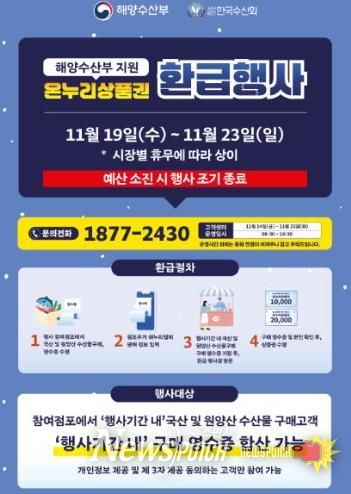 특히 김장철에는 젓갈류, 생선류 등 수산물 소비가 크게 늘어 가격 부담이 가중되는 시기인 만큼, 이번 환급행사가 시민들의 겨울철 식탁 준비에 실질적인 도움이 될 전망이다.