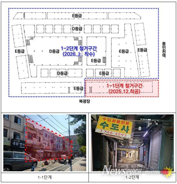 송현자유시장은 노후화가 심각해 안전 확보가 시급한 곳으로, 올해 8월 실시한 정밀안전점검에서 7개 동 E등급, 3개 동 D등급 판정을 받았다.