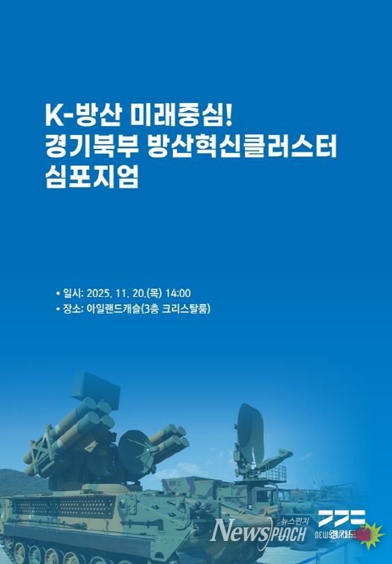 뉴스펀치 김길룡 기자 | 경기도는 오는 20일 의정부 아일랜드 캐슬에서 ‘K-방산 미래중심! 경기북부 방산혁신클러스터 심포지엄’을 열고 첨단 방위산업 중심지 육성과 방산혁신클러스터 조성 방향의 모색을 위한 논의의 장을 펼친다.