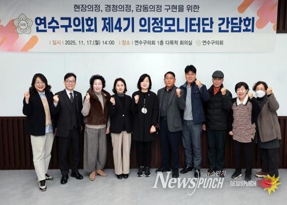 뉴스펀치 김길룡 기자 | 인천광역시 연수구의회는 2025년 11월 17일 오후 2시, 의회 다목적 회의실에서 연수구의회 제4기 의정모니터단 하반기 간담회를 개최했다.