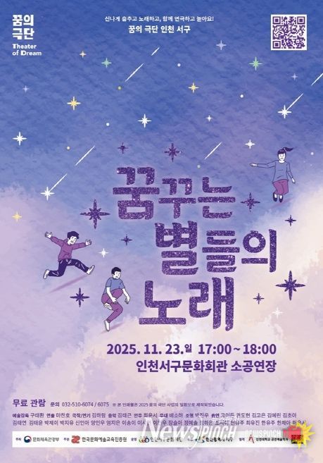 뉴스펀치 김길룡 기자 | 인천서구문화재단이 오는 11월 23일 오후 5시, 인천서구문화회관 소공연장에서 ‘2025년 꿈의 극단 인천 서구 정기공연 - 꿈꾸는 별들의 노래’를 개최한다.