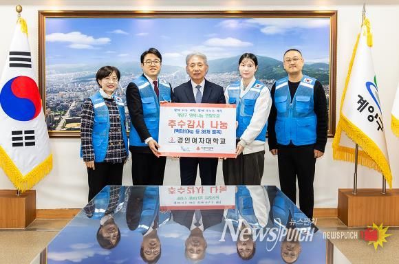 뉴스펀치 김길룡 기자 | 인천광역시 계양구는 18일 경인여자대학교가 추수감사절을 맞아 취약계층 이웃을 돕기 위한 물품을 기탁했다고 밝혔다.