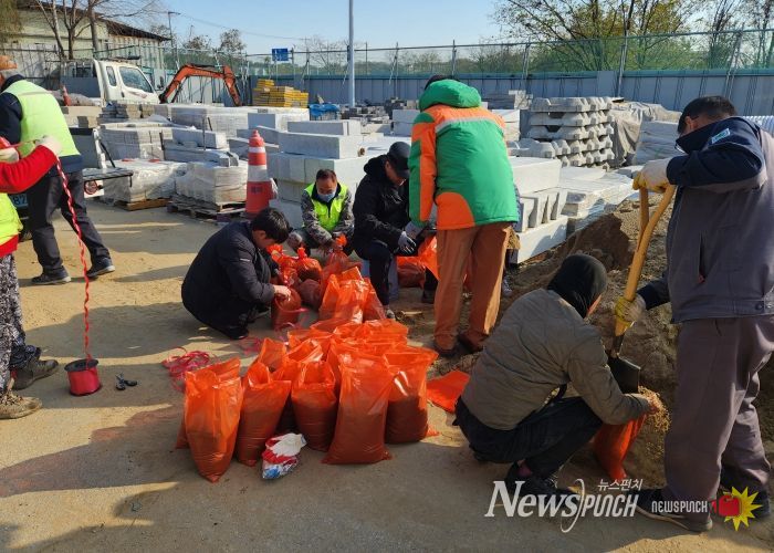 뉴스펀치 김길룡 기자 | 평택시 지산동이 겨울철 대설 피해 예방을 위해 선제 대응에 나섰다. 지산동 자율방재단은 지난 18일 대설 대비 모래주머니 제작 작업을 하고, 주요 취약지 점검에 돌입했다.