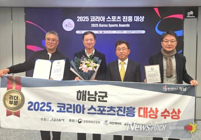 뉴스펀치 최영남 기자 | 해남군이 2025 코리아 스포츠진흥대상에서 리더부문 대상을 수상하며 스포츠마케팅 역량을 인정받았다.