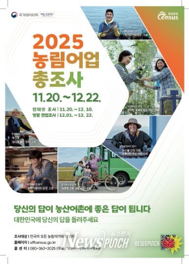 뉴스펀치 김길룡 기자 | 남양주시는 11월 20일부터 12월 22일까지 농림어가 15,364가구와 행정리 395개 전 지역을 대상으로 ‘2025 농림어업총조사’를 실시한다고 밝혔다.