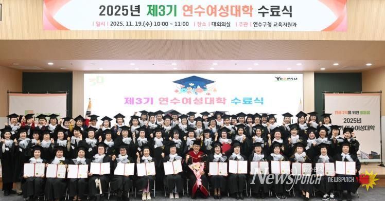 뉴스펀치 김길룡 기자 | 연수구는 지난 19일 구청 대회의실에서 학습과 성장을 마무리하는 ‘2025년 제3기 연수여성대학 수료식’을 성황리에 열었다.