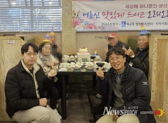 뉴스펀치 김길룡 기자 | 지난 19일 수원시 팔달구 매교동은 ‘세상에 하나뿐인 생신상(생신 도래 어르신 생신상 차림)’ 사업으로 11월 생일이 도래한 관내 저소득 어르신들께 생신상 한상차림을 대접했다.