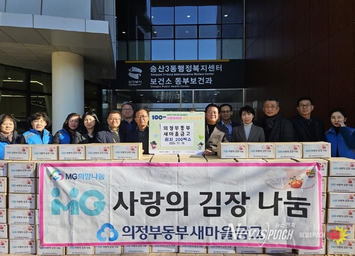 뉴스펀치 김길룡 기자 | 의정부시 송산3동행정복지센터는 11월 18일 의정부동부새마을금고가 송산권역의 어려운 이웃을 위한 김장김치 200상자(5kg 단위)를 기탁하며 ‘100일간 사랑릴레이 배턴 잇기’에 동참했다고 밝혔다.