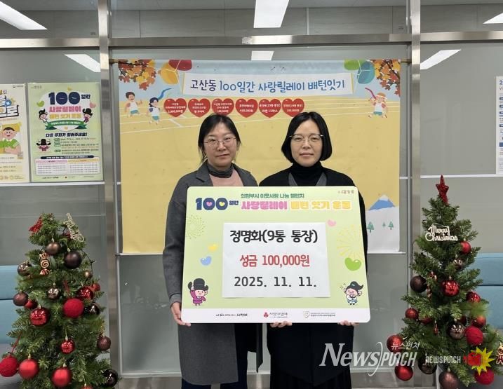뉴스펀치 김길룡 기자 | 의정부시 고산동주민센터는 고산동 통장협의회가 ‘100일간 사랑릴레이 배턴 잇기’에 참여해 이웃사랑 실천에 동참했다고 20일 밝혔다.