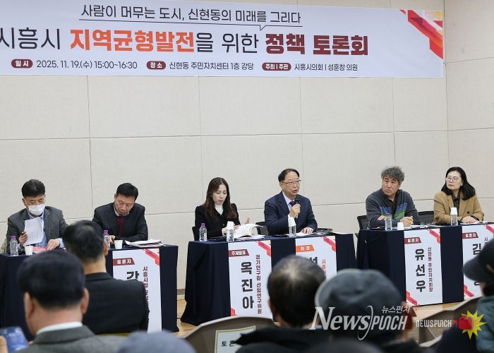 뉴스펀치 김길룡 기자 | 경기 시흥시의회가 11월 19일 신현동 주민자치센터 1층 강당에서 ‘사람이 머무는 도시, 신현동의 미래를 그리다’를 주제로 지역균형발전 정책토론회를 개최했다.