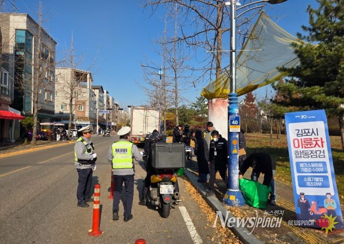 뉴스펀치 김길룡 기자 | 김포시는 12월 19일 오후 2시부터 4까지 장기동 먹자골목 인근에서 이륜자동차를 대상으로 유관기관 합동점검을 실시했다고 밝혔다. 이번 점검은 코로나19 이후 급증한 배달문화 확산으로 증가한 이륜자동차 소음 민원에 적극적인 대응을 하고자 진행됐다.