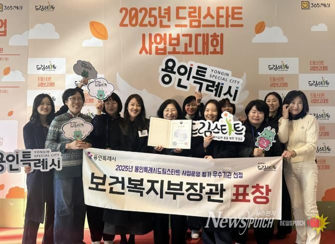 뉴스펀치 김길룡 기자 | 용인특례시는 ‘2025년 드림스타트 사업보고대회’에서 전국 우수 지방자치단체로 선정돼 보건복지부 장관 표창을 수상했다고 21일 밝혔다.