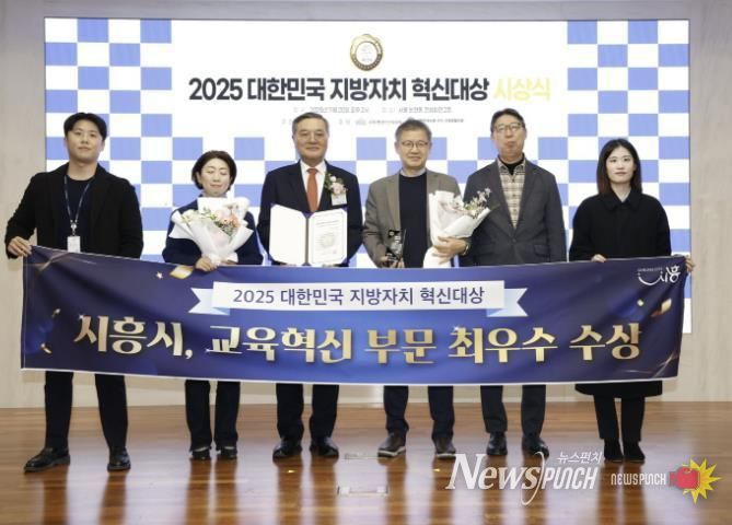 뉴스펀치 김길룡 기자 | 시흥시는 지난 11월 20일 서울 건설회관에서 열린 ‘2025 대한민국 지방자치 혁신대상’에서 교육혁신 부문 최우수상을 받았다. 시는 지난해 최고 혁신 단체장상에 이어 2년 연속 수상의 쾌거를 이루며 교육혁신 선도 도시로서의 위상을 다시 한번 입증했다.